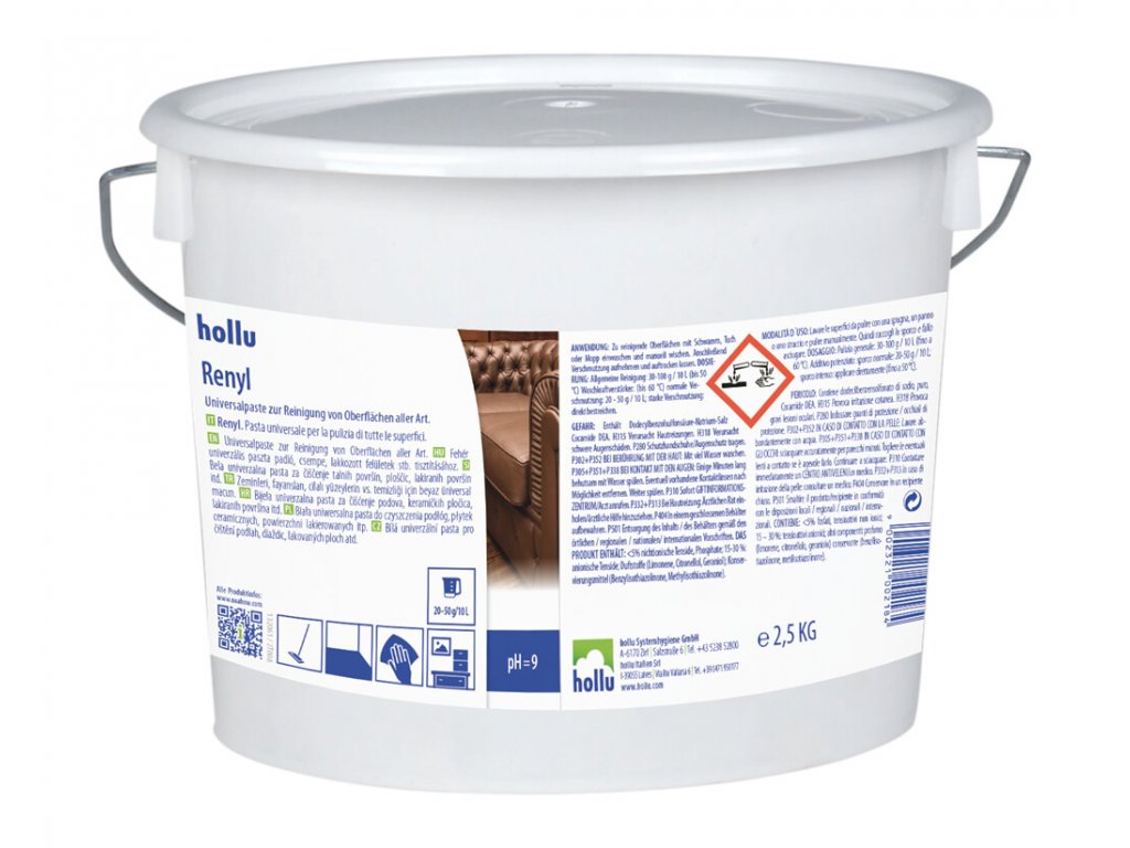 Univerzální čistící mýdlová pasta na povrchy, podlahy, zrcadla, okna, nádobí, lakované povrchy atd., optimální pro citlivé materiály, jako kůže a dřevo. Nízká spotřeba i přes vysoký efekt čištění.